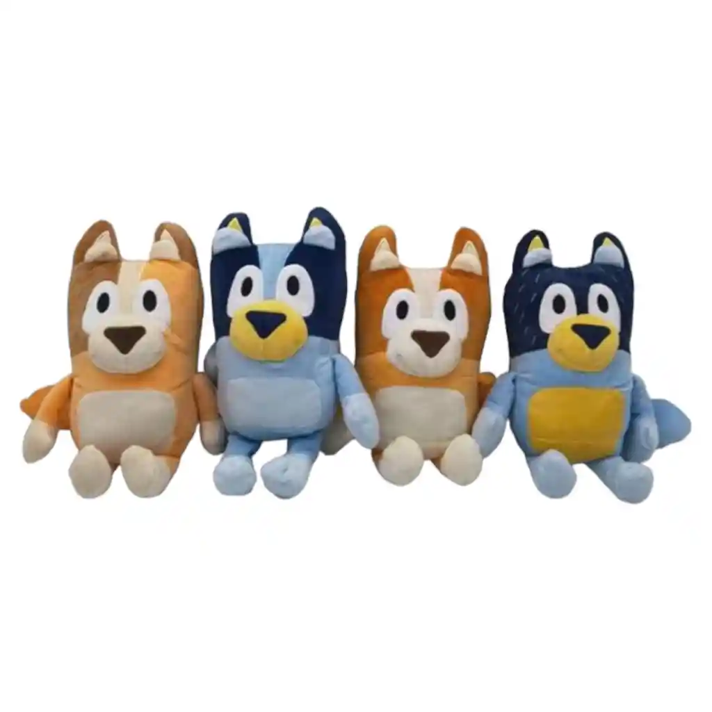 Esta compra incluye: - 4 Peluches Familia * Bluey * Bingo * Mamá * Papá Disfruta de la compañía de estos adorables personajes de la popular serie. Suaves y acogedores, perfectos para abrazar y jugar. Ideal para fanáticos de todas las edades.