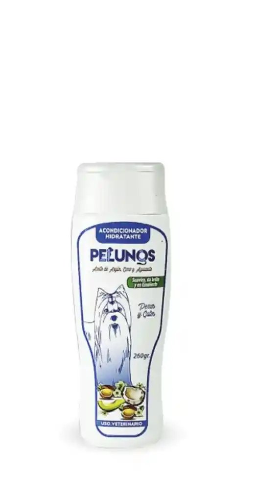 Acondicionador hidratante Pelunos, sirve para hidratar, dar brillo y acondicionar en mascotas de pelaje largo.