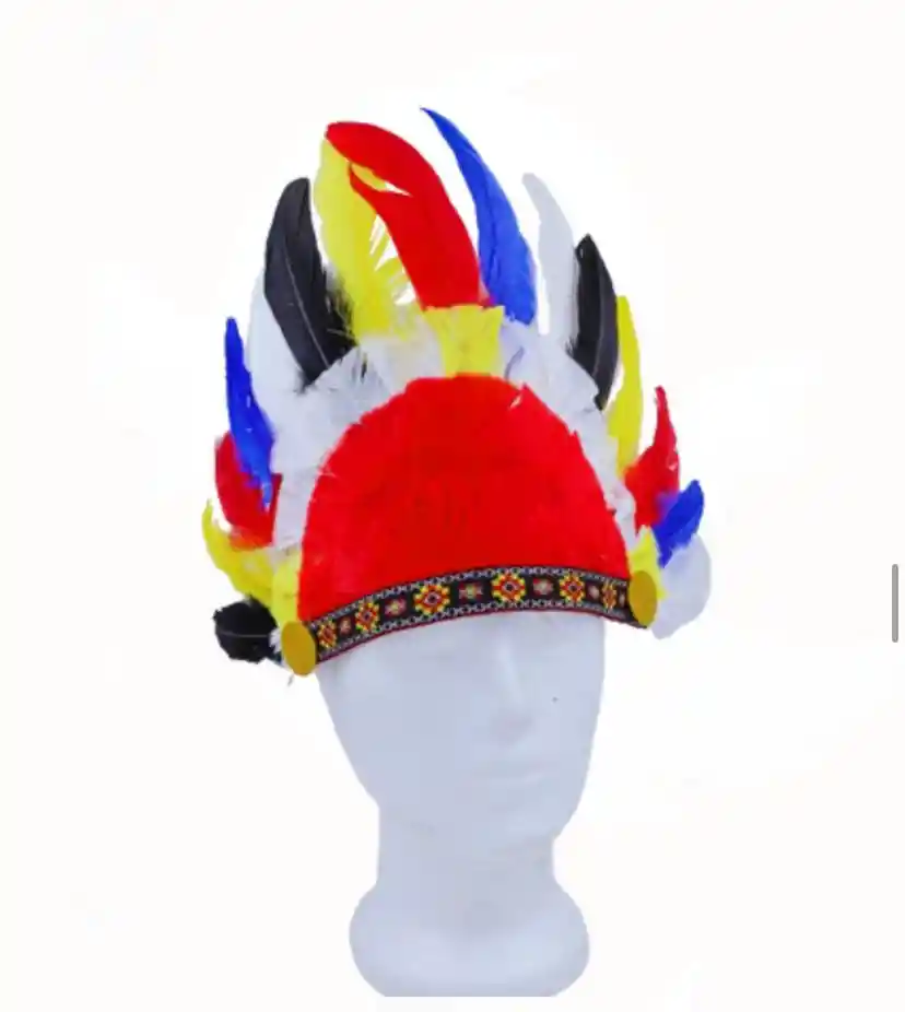 Increíble penacho grande de Indígena con plumas realistas para disfraz de Chaman. ¡Es liviano y tiene plumas sintéticas idénticas a las de verdad! Medidas: 46 cm de ancho x 27cm de alto Tiene una banda elástica en la parte posterior para sujetar a la cabeza. Tenemos más accesorios para complementar tus disfraces.