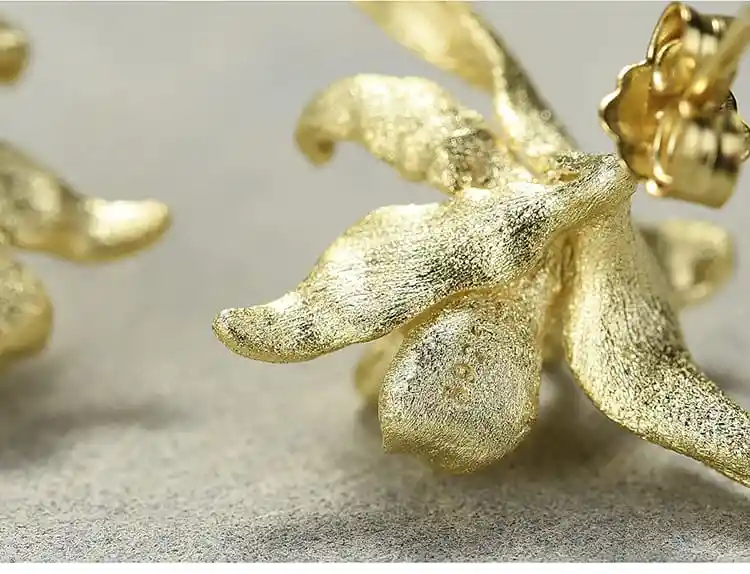Pendientes forma de flor de Iris en plata de ley 925 con baño dorado. En una forma única de flor.