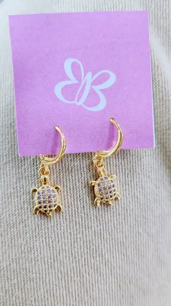 Pendientes con dijes de tortuga Material: baño de rodio