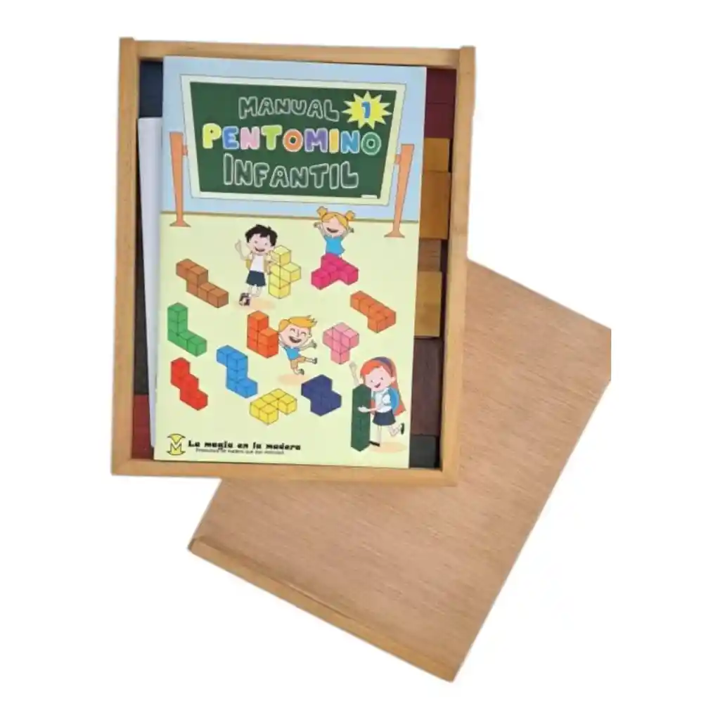 Es un juego de lógica y matemáticas que usa 12 formas geométricas (pentominós), cada una hecha de 5 cuadrados, para construir figuras y patrones, desarrollando razonamiento espacial, resolución de problemas, percepción visual y creatividad; idealmente, se presenta en sets de piezas de madera o plástico de colores, con desafíos en tarjetas para encajarlas en un marco, sirviendo como herramienta educativa desde los 3-5 años en adelante.