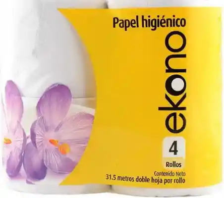 PEPEL HIGIENICO EKONO X 4 ROLLOS. 4 ROLLOS DE PAPEL HIGIENICO DOBLE HOJS DE 31.5. TOTAL 126 METROS
