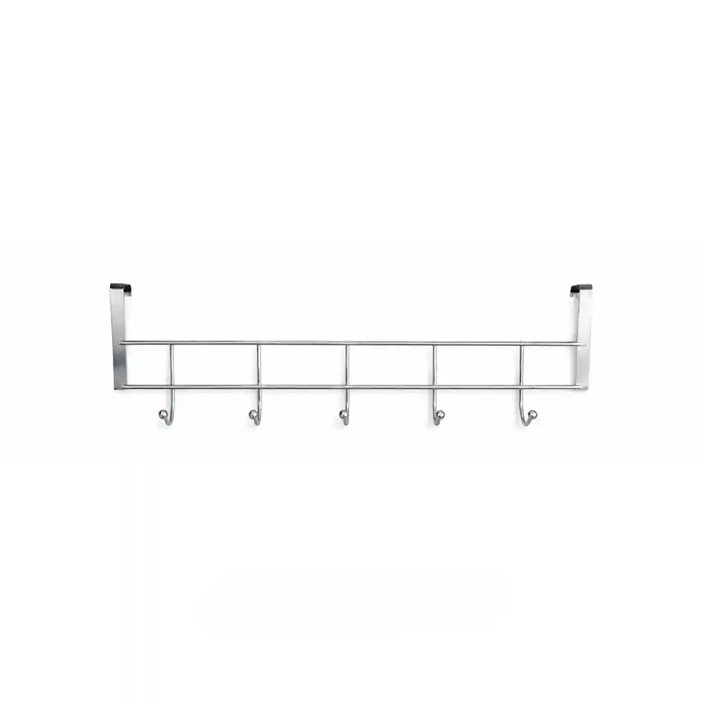 Fabricado en acero inoxidable de alta calidad. Perchero fuerte y duradero, de alta rensistencia. Diseñado con 5 ganchos de eslabones. Diseño que facilita la instalación en puertas. Permite colgar múltiples artículos de manera eficiente. Acabado cromado que aporta un toque elegante. Estilo clásico que se adapta a diversas decoraciones. Accesorio esencial para mantener el orden . Fácil de instalar sin complicaciones . Este perchero no ocupa mucho espacio. Ofrece espacio para colgar varias prendas. Fácil limpieza y mantenimiento. No colgar artículos de alto valor. La imagen ha sido ambientada; no incluye accesorios adicionales y el color puede variar según la iluminación.