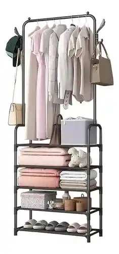 - Barra superior resistente para colgar rop - Estantes múltiples para ropa doblada y accesorios - Espacio inferior ideal para zapatos - Medidas: 170 cm alto x 60 cm ancho x 29.5 cm fondo - Estructura metálica firme y duradera - Perfecto para dormitorio, clóset o lavandería - Fácil armado y uso diario