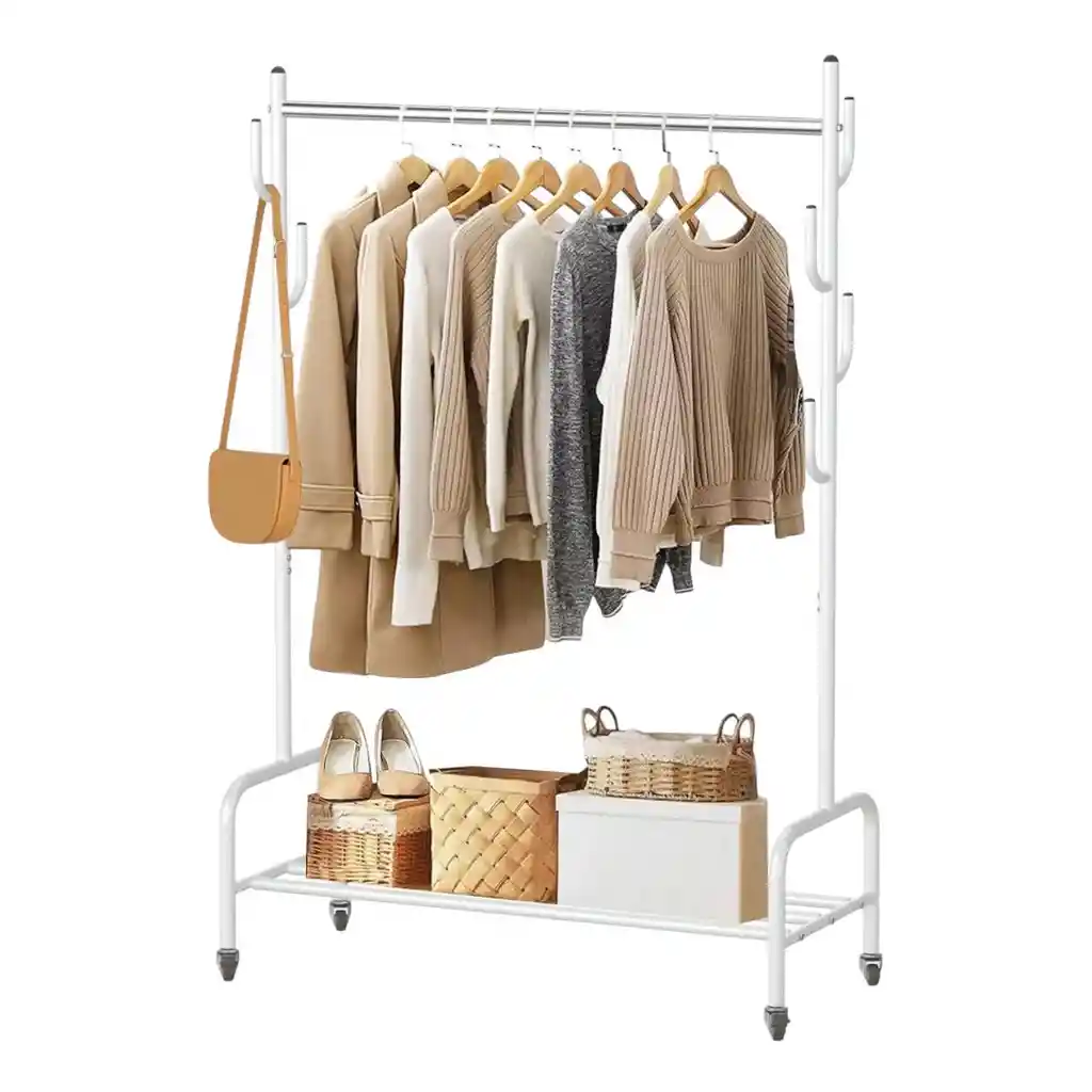 Diseño 3 en 1: este perchero colgante combina un perchero, un perchero y un zapatero, lo que puede ayudarte a mantenerte organizado a diario. Este estante colgante no solo se puede utilizar para colgar ropa, sino que las ramas en ambos lados también se pueden utilizar para colgar bolsos, sombreros, etc. la parte inferior se puede utilizar para colocar zapatos y cajas organizadoras, etc. Mejora el uso del espacio hasta cierto punto, maximiza tu espacio de almacenamiento. Resistente y duradero: este perchero resistente está hecho de acero de alta calidad, todos los tubos de acero, hacen que un perchero resistente pueda soportar hasta 130 libras de carga. Todo el diseño de tubo de acero también mejora en gran medida la estabilidad de la percha, di adiós a la agitación y la flexión. Dimensiones: con un tamaño total de 38.19 pulgadas de largo x 14.17 pulgadas de ancho x 55.12 pulgadas de alto, el estante rodante utiliza el espacio limitado para expandir tu armario y hacer que la habitación esté más ordenada.