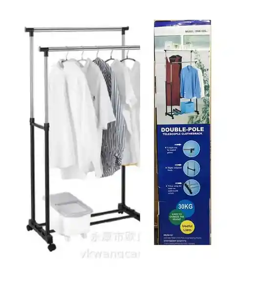 Identificación del producto: Se trata de un perchero telescópico de doble barra, diseñado para colgar y organizar ropa.