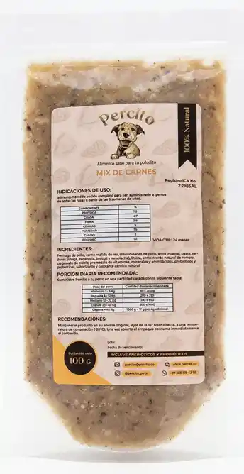 Alimento húmedo cocido natural con proteína alta calidad (Pollo y Res), vitaminas, minerales, prebióticos, probióticos y antioxidantes naturales. Formulado para cubrir los requerimientos nutricionales para perros adultos y cachorros desde las 8 semanas de edad.
