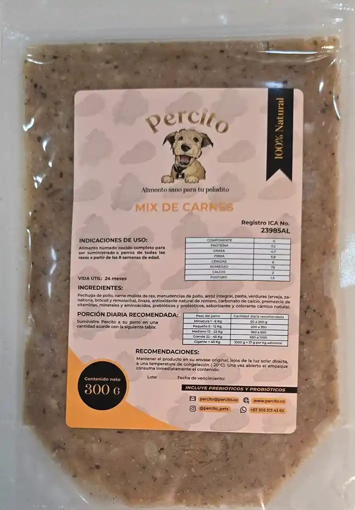 Alimento húmedo cocido natural con proteína alta calidad (Pollo y Res), vitaminas, minerales, prebióticos, probióticos y antioxidantes naturales. Formulado para cubrir los requerimientos nutricionales para perros adultos y cachorros desde las 8 semanas de edad.