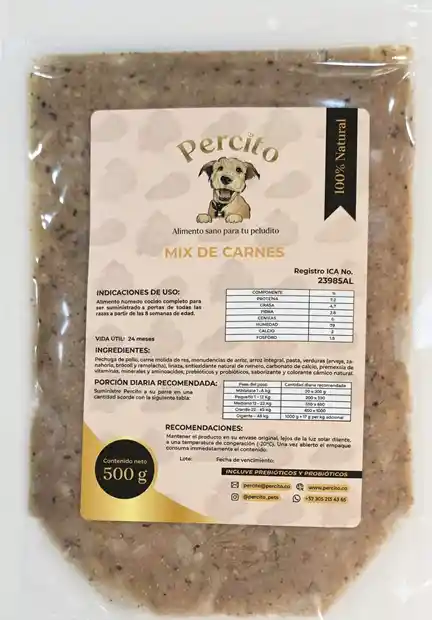 Alimento húmedo cocido natural con proteína alta calidad (Pollo y Res), vitaminas, minerales, prebióticos, probióticos y antioxidantes naturales. Formulado para cubrir los requerimientos nutricionales para perros adultos y cachorros desde las 8 semanas de edad.