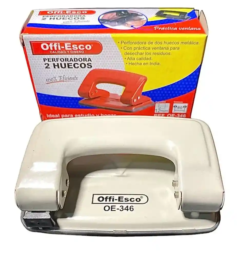 PERFORADORA 2 HUECOS PEQUEÑA METALICA OFFI OE-346, CON PRACTICA VENTANA PARA DESECHAR LOS RESIDUOS, IDEAL PARA ESTUDIO Y HOGAR. SE ENVÍA EN COLOR SURTIDO