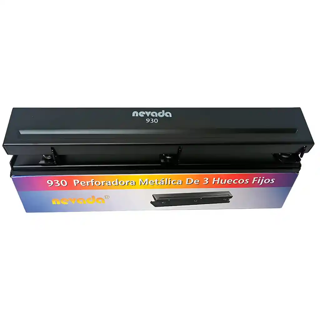 Perforadora de tres huecos ajustable con base antideslizante, para hojas tamaño carta, capacidad para perforar hasta 10 hojas. Diámetro de perforación de 7 mm.