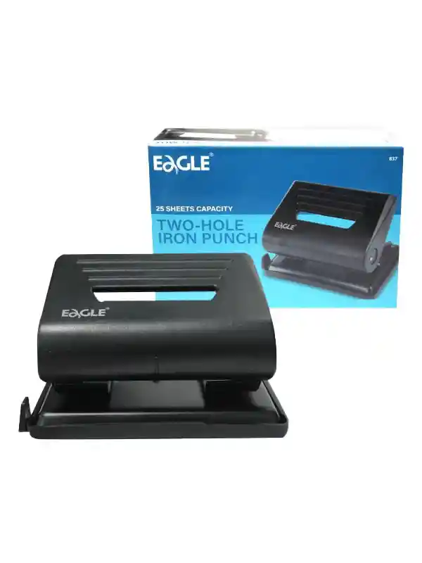 Perforadora EAGLE Dos Huecos Ref. 837 – Capacidad 25 Hojas La perforadora EAGLE Ref. 837 es una herramienta resistente y eficiente, ideal para oficinas, instituciones educativas y uso personal. Diseñada con un mecanismo firme y preciso, permite perforar hasta 25 hojas con mínimo esfuerzo, creando perforaciones limpias y uniformes en cada uso. Su estructura metálica garantiza durabilidad, mientras que la base antideslizante brinda estabilidad durante la perforación. Incluye depósito para residuos de papel, facilitando la limpieza y manteniendo el área de trabajo ordenada. ⭐ Características: Perforadora de dos huecos. Capacidad: hasta 25 hojas. Referencia: EAGLE 837. Construcción metálica resistente. Base antideslizante para mayor estabilidad. Depósito para residuos de papel. Ideal para oficina, estudio o hogar.