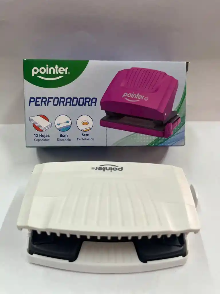 Perforadora marca POINTER, 2 huecos con capacidad de hasta 12 hojas