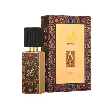 Lattafa Ajwad Eau de Parfum 60 ml es una fragancia unisex de estilo oriental-amaderado con notas frutales en la salida, un corazón floral de jazmín y rosa, y un fondo cálido de vainilla, ámbar, almizcle y cedro ofrece una excelente duración de 8 a 12 horas y una proyección intensa, ideal para climas fríos o eventos especiales, destacándose por su aroma dulce, envolvente y elegante.