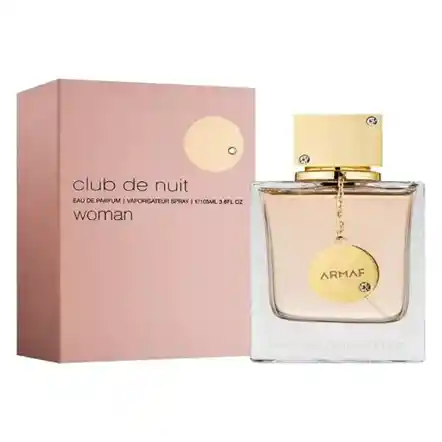 Armaf Club de Nuit Woman EDP 105 ml para mujer es una fragancia floral frutal lanzada en 2015, muy comparada con Chanel Coco Mademoiselle por su aroma elegante y sofisticado abre con notas cítricas y de durazno, seguido de un corazón floral con rosa y jazmín, y un fondo cálido de vainilla, pachulí y almizcle.