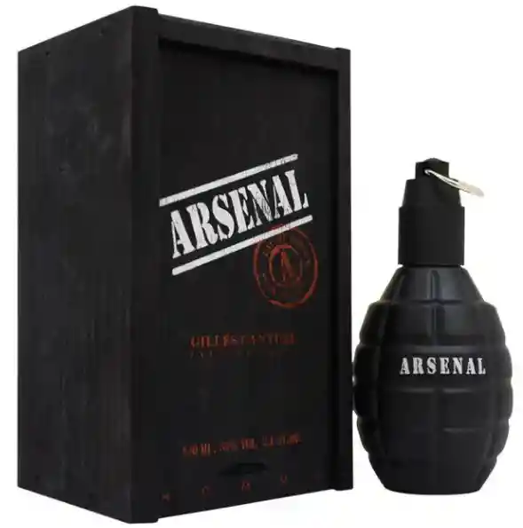 Arsenal Black de Gilles Cantuel, lanzado en 2007, es un perfume masculino de la familia amaderada-aromática que combina la frescura cítrica del limón y lo herbal de la salvia con un corazón especiado de cedro, nuez moscada y jazmín, reposando sobre una base cálida y sensual de pachulí, sándalo, ámbar y almizcle, logrando una fragancia intensa, versátil y elegante, ideal para el hombre seguro que busca dejar una impresión sofisticada tanto en el día a día como en ocasiones especiales.