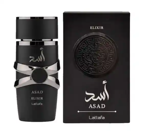 Asad Elixir de Lattafa Perfumes es una fragancia de la familia olfativa Oriental para Hombres. Esta fragrancia es nueva. Asad Elixir se lanzó en 2025. Las Notas de Salida son pimienta rosa, azafrán y toronja (pomelo) las Notas de Corazón son tabaco, cedro y vainilla las Notas de Fondo son Incienso, ámbar ligero, pachulí y cachemira.