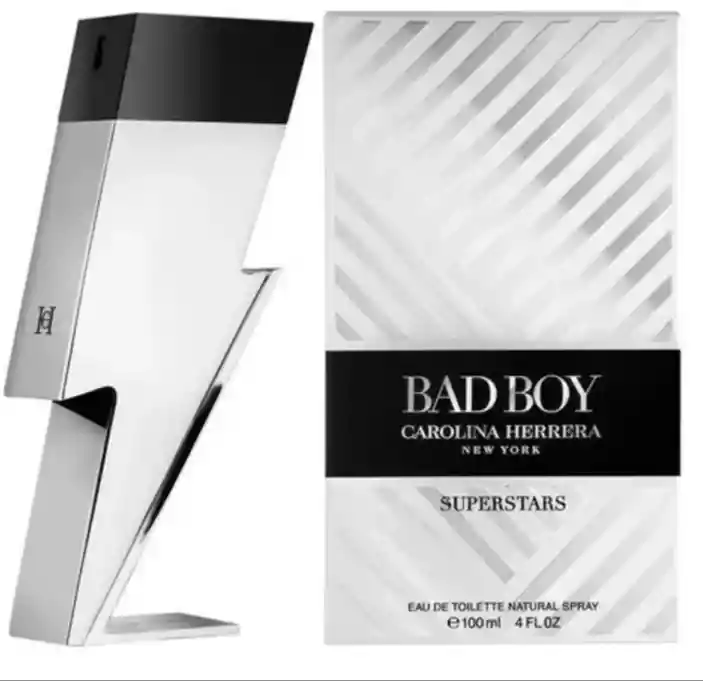 Carolina Herrera Bad Boy Superstars EDT 100 ml es una edición de coleccionista masculina presentada en 2021, que conserva la icónica silueta en forma de rayo pero con un impactante acabado metálico reflectante. Se inscribe en la familia aromática especiada-amaderada, abriendo con un chispazo de pimienta blanca y negra fusionada con cítrica bergamota italiana su corazón equilibra la frescura del cedro y la salvia, mientras que la base combina la dulzura cálida del cacao, la haba tonka y el ambarwood, ofreciendo una estela envolvente pero equilibrada