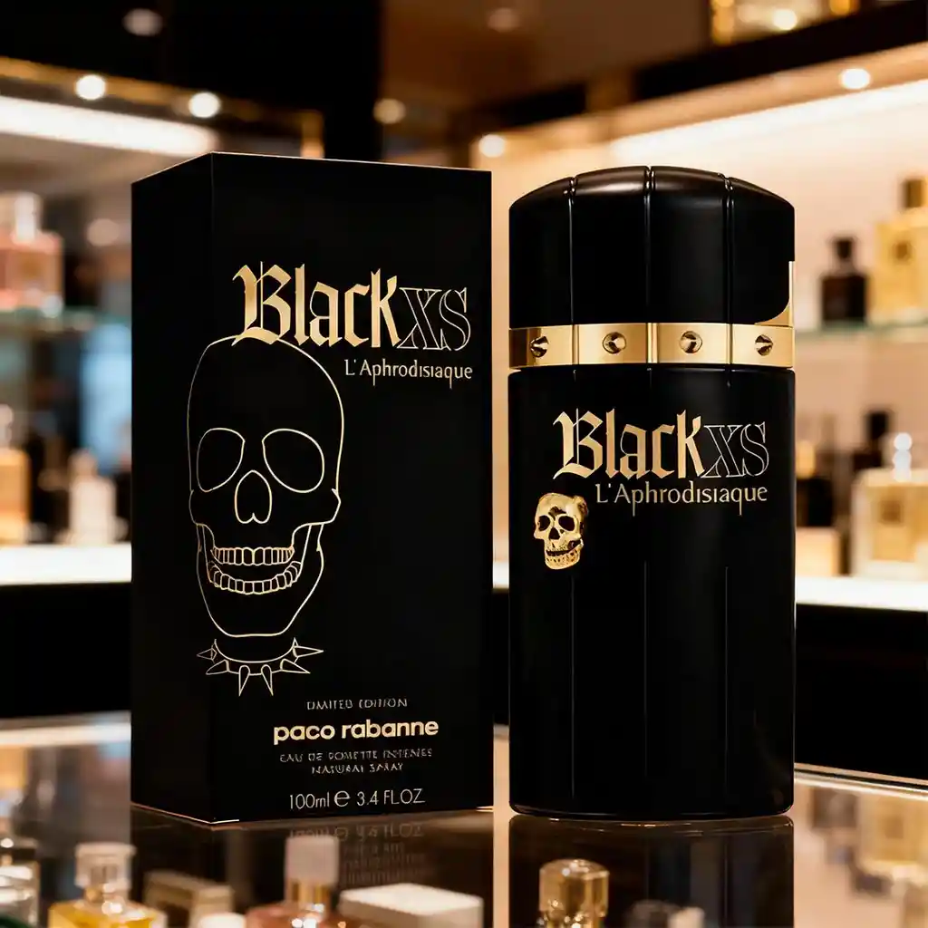Black XS L'Aphrodisiaque for Men de Rabanne es una fragancia de la familia olfativa Cuero para Hombres. Black XS L'Aphrodisiaque for Men se lanzó en 2013. La Nariz detrás de esta fragrancia es Olivier Cresp. Las Notas de Salida son canela y azafrán; las Notas de Corazón son miel, flor de azahar del naranjo y ciprés; las Notas de Fondo son praliné, cuero y almendra.