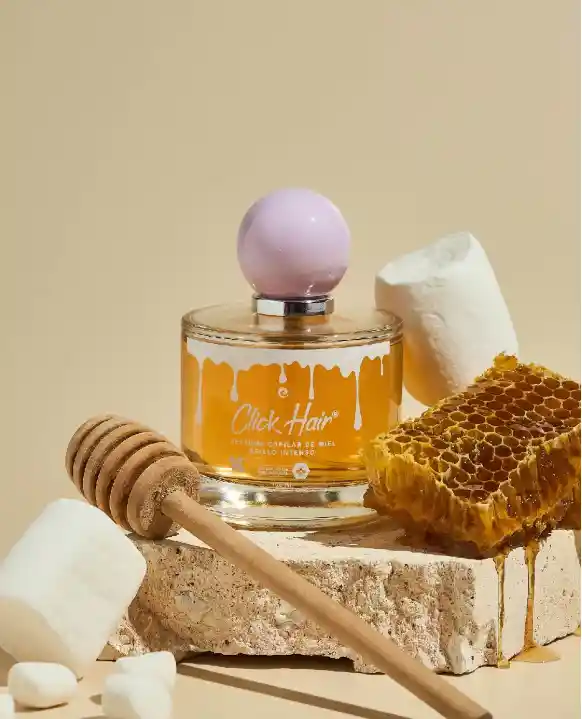 Nuestros Perfumes Capilares de Miel Click Hair envuelven tu cabello en un aroma exquisito y duradero con notas dulces de miel, caramelo, pistacho y masmelo. Su fórmula de alta concentración garantiza una fijación prolongada que permanece durante horas, dejando una estela delicada y sofisticada sin resecar el cabello. Gracias al poder nutritivo de la miel de abejas, este perfume capilar potencia el brillo natural, mejora la sedosidad y ayuda a controlar el frizz, proporcionando un acabado luminoso y elegante desde la primera aplicación.