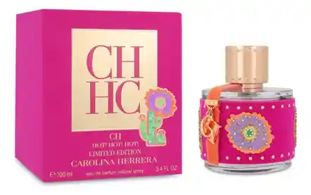 CH Hot Lovers de Carolina Herrera, una fragancia femenina de edición limitada lanzada en 2020, diseñada para mujeres apasionadas, románticas y atrevidas su aroma combina notas dulces y especiadas, comenzando con pimienta rosa y pera, un corazón floral de rosa búlgara y jazmín sambac, y una base cálida y envolvente de vainilla, almizcle y ámbar, todo en un frasco rosa decorado con detalles de tachuelas y un corazón flechado que transmite energía vibrante, amor y poder femenino.