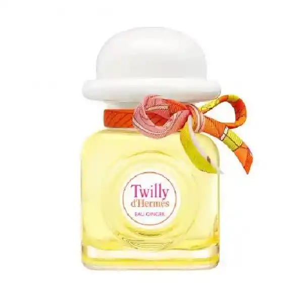 "Twilly Eau Ginger, el brillo de las chicas Hermes. Una creación deslumbrante tejida con tres materiales: una peonía generosa y vibrante, un jengibre confitado brillante, un cedro flexible y vivo. Un eau de parfum floral, especiado y amaderado. Emoción olfativa: Cálida, Sensual Materias primas principales: Jengibre confitado, Peonía, Cedro"