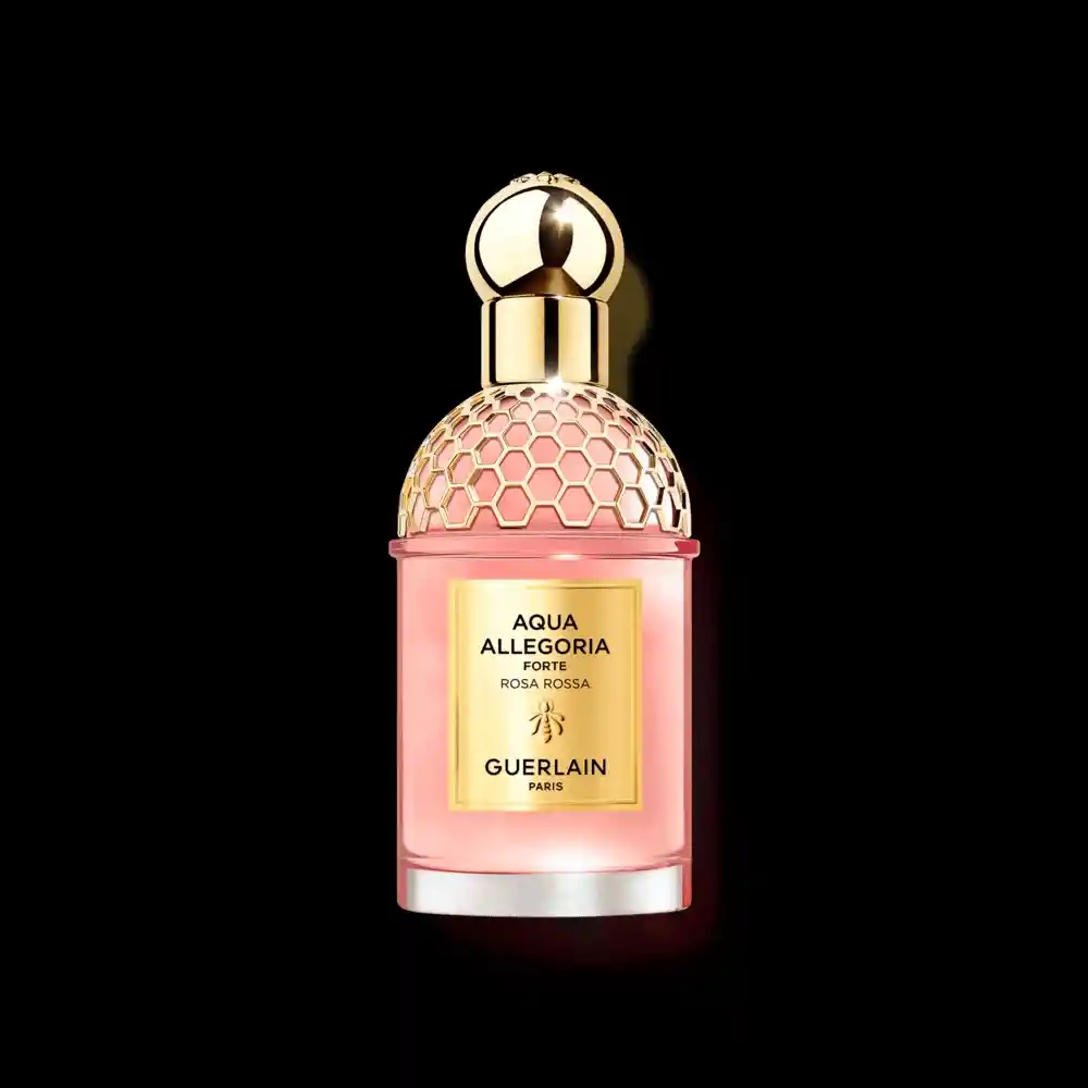 "Rosa Rossa Forte, una majestuosa eclosión de delicadas rosas bañadas por el sol que se funden con un melocotón blanco jugoso sobre un fondo deliciosamente amaderado. La colección Aqua Allegoria Forte, un viaje cálido y envolvente al corazón de las maravillas del mundo: las aguas de perfume que rinden homenaje a la belleza intensa de la naturaleza, revelada por los rayos dorados de un sol poniente."
