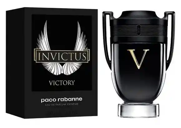 Invictus Victory de Rabanne es una fragancia de la familia olfativa Oriental para Hombres. Invictus Victory se lanzó en 2021. Las Notas de Salida son pimienta rosa y limón (lima ácida); las Notas de Corazón son incienso de olíbano (franquincienso) y lavanda; las Notas de Fondo son vainilla, haba tonka y ámbar.