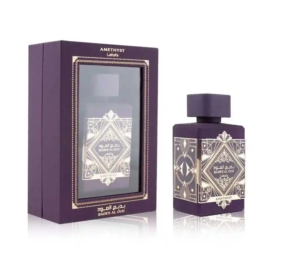 - Perfume Lattafa Amethyst de 100 ML Unisex. Entregado con: 1) Sello importe La Riviera 2) Bolsa La Riviera 3) Pin de Seguridad. / La segunda imagen es un EJEMPLO de como llega el producto