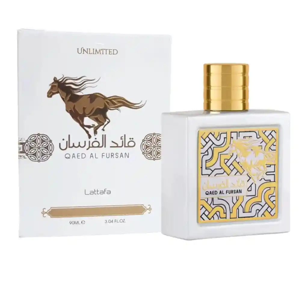 MARCA: LATTAFA GENERO: UNISEX FAMILIA: DULCE, AVAINILLADO, COCO, TROPICAL, ATALCADO TAMAÑO: 90 ML DESCRIPCION: Qaed Al Fursan Unlimited de Lattafa Perfumes es una fragancia de la familia olfativa para Hombres y Mujeres. Esta fragrancia es nueva. Qaed Al Fursan Unlimited se lanzó en 2022. Las Notas de Salida son coco, cítricos y piña; las Notas de Corazón son ylang-ylang, frangipani (plumeria, plumaria, atapaima) y jazmín; las Notas de Fondo son vainilla, almizcle, sándalo y notas dulces.