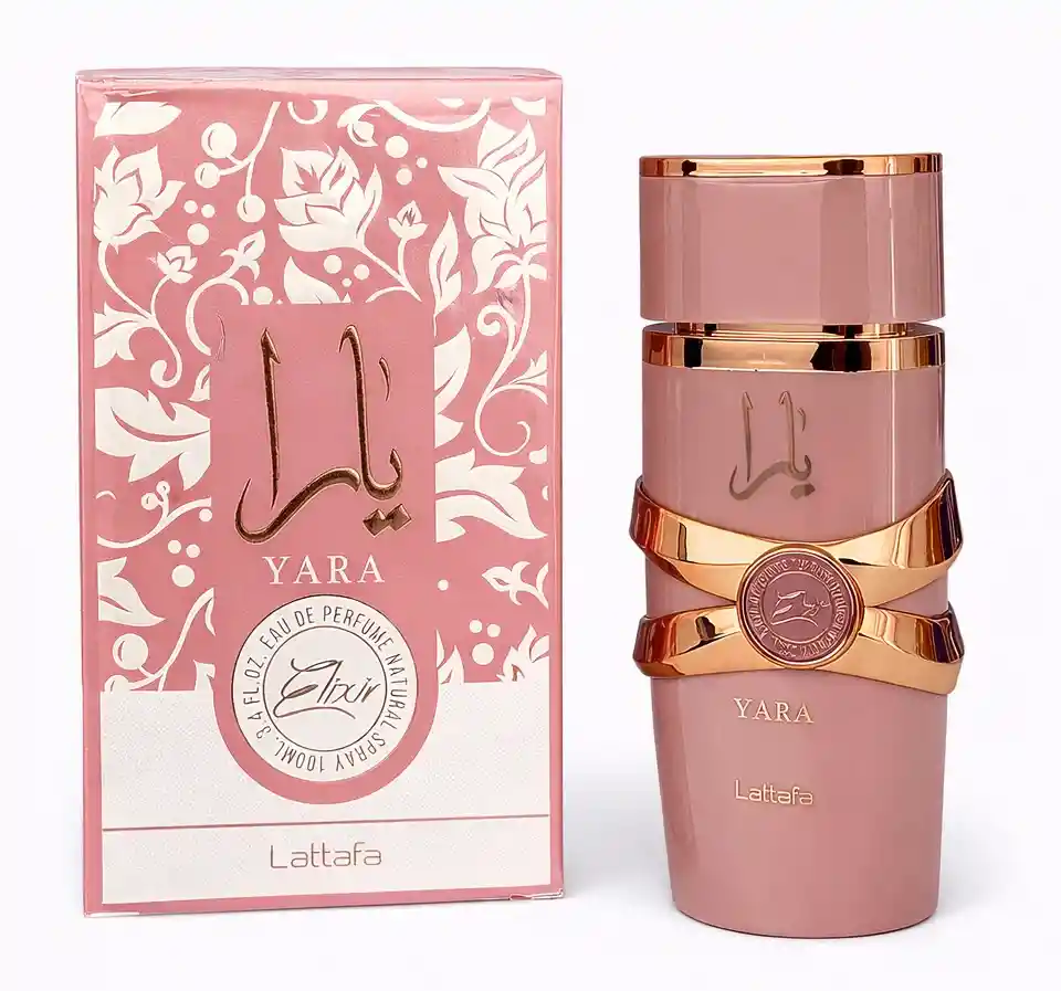 Yara Elixir de Lattafa Perfumes es una fragancia de la familia olfativa Oriental Vainilla para Mujeres. Esta fragrancia es nueva. Yara Elixir se lanzó en 2025. Las Notas de Salida son S'mores de Fresa y grosellas negras; las Notas de Corazón son flor de azahar del naranjo y jazmín; las Notas de Fondo son vainilla, caramelo, ámbar y almizcle.