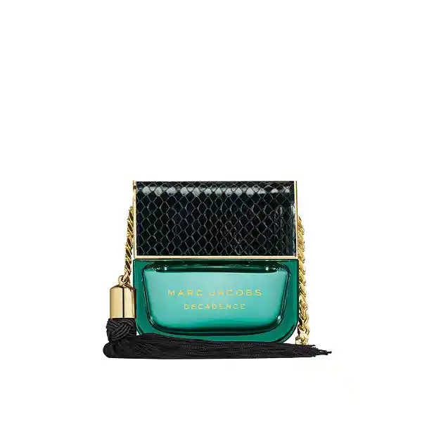 Marc Jacobs Decadence es una fragancia sensual, lujosa y amaderada, que encarna el espíritu del glamour irreverente. La gorra presenta una cadena de oro y un estampado de pitón verde oscuro. Una bola negra cuelga de la cadena en las tapas de los tamaños de 1.7oz y 3.4oz. Los imanes aseguran la tapa a la botella verde para que la cadena pueda transportar todo el paquete.