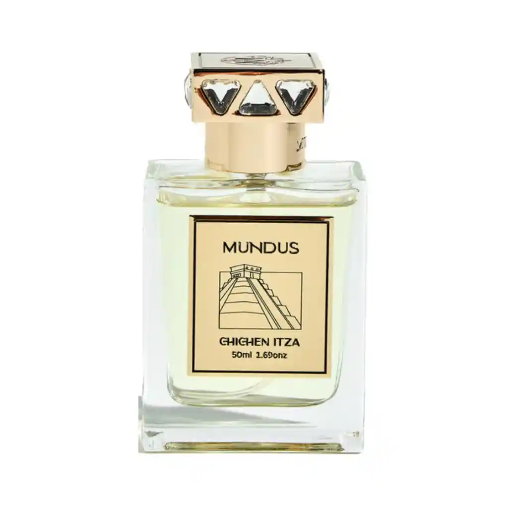 Chichen Itza es un homenaje a la grandeza y la belleza de la antigua civilización maya. Desde las primeras notas, una mezcla exquisita de bergamota, jazmín de agua y rosa te sumerge en la esencia de la selva tropical. En su corazón, el dulzor del durazno, el caramelo y la delicadeza de la azucena te transportan a un mundo de misterio y esplendor. La base, con sus acordes de madera de cachemira, ámbar y vainilla, evoca la conexión profunda con la naturaleza y la riqueza cultural de la región. MUNDUS, con Chichen Itza, busca capturar la magia y el encanto de este icónico sitio arqueológico, invitándote a explorar los misterios de las selvas y pirámides de México mientras te sumerges en una experiencia sensorial única y envolvente. Concentración: Extracto de perfume. Notas de salida: Ylang-ylang, bergamota, jazmín de agua, hierba y rosa. Notas de corazón: Durazno (melocotón), caramelo, azucena, violeta, cipriol (nagarmota), flor del peral y heliotropo blanco. Notas de fondo: Coco, madera de cachemira, ámbar, haba tonka, vainilla, almizcle, árbol de ébano y madera de gaiac.