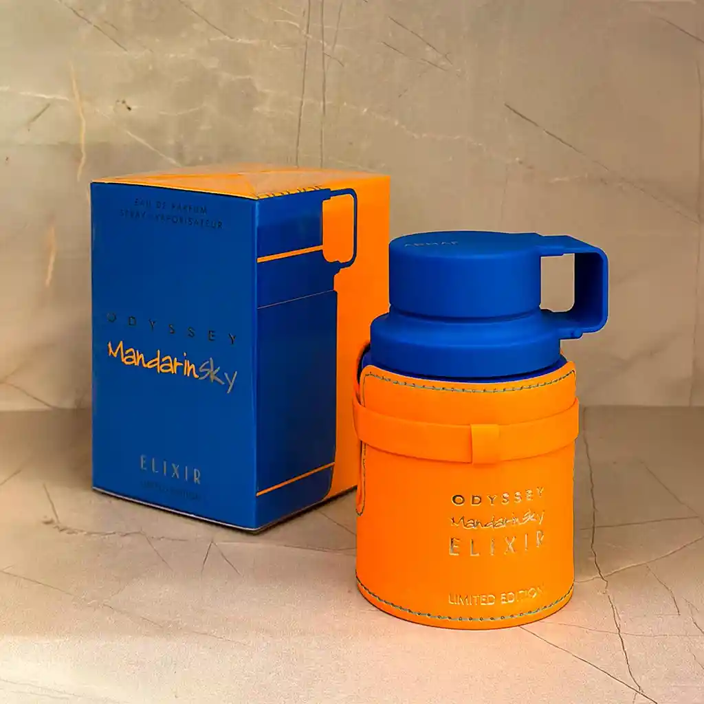 Odyssey Mandarin Sky Elixir de Armaf es una fragancia de la familia olfativa Oriental Amaderada para Hombres y Mujeres. Esta fragrancia es nueva. Odyssey Mandarin Sky Elixir se lanzó en 2025. Las Notas de Salida son mandarina, naranja, lavanda, pimienta negra y cardamomo; las Notas de Corazón son caramelo, haba tonka, pachulí y incienso; las Notas de Fondo son vainilla y vetiver.