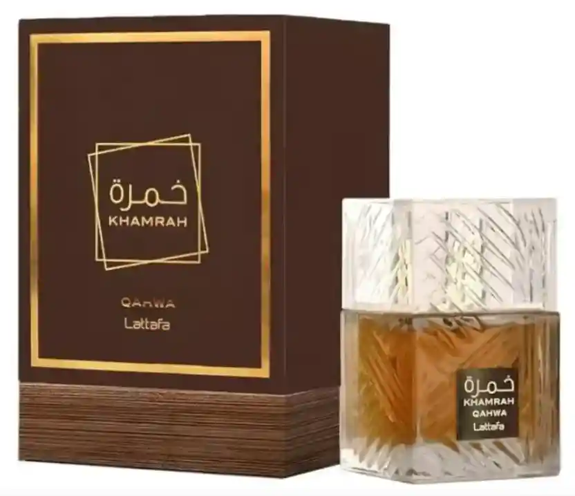 Khamrah Qahwa Eau De Parfum 100 ml de Lattafa es un perfume unisex de estilo oriental gourmand, lanzado en 2023, que destaca por su mezcla envolvente de canela, jengibre, praliné, frutas confitadas y un fondo profundo de café árabe, vainilla, haba tonka y almizcle, ideal para climas fríos y noches especiales. Tiene una duración excelente de 10 a 12 horas y una proyección potente, por lo que debe aplicarse con moderación.