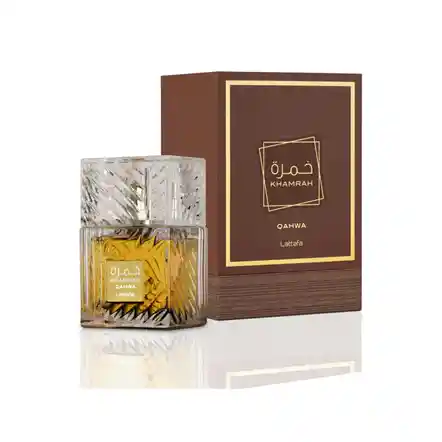 Khamrah Qahwa Eau De Parfum 100 ml de Lattafa es un perfume unisex de estilo oriental gourmand, lanzado en 2023, que destaca por su mezcla envolvente de canela, jengibre, praliné, frutas confitadas y un fondo profundo de café árabe, vainilla, haba tonka y almizcle, ideal para climas fríos y noches especiales. Tiene una duración excelente de 10 a 12 horas y una proyección potente, por lo que debe aplicarse con moderación.
