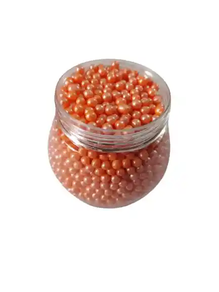 Perlas comestibles dulces #4. Color salmón. Ideales para decorar tortas, cupcakes y postres. Contenido 125 grs. Producto importado de alta calidad.