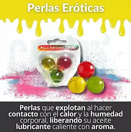 Novedosas perlas que explotan al hacer contacto con el calor y la humedad corporal, liberando su aceite lubricante. Brindan una excelente lubricación y ayudan a una relación más placentera. También, pueden ser usadas como lubricante anal para una sorprendente lubricación y penetración. Incluye: paquete con 3 perlas sabores como cereza, piña y manzana verde