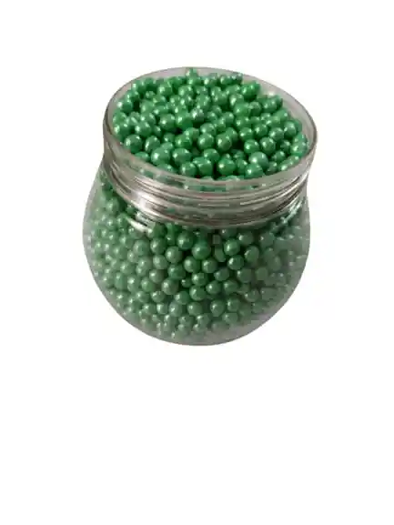 Perlas comestibles dulces color verde # 4. Ideales para decorar tortas, cupcakes y postres. Contenido 125 grs. Producto importado de alta calidad.