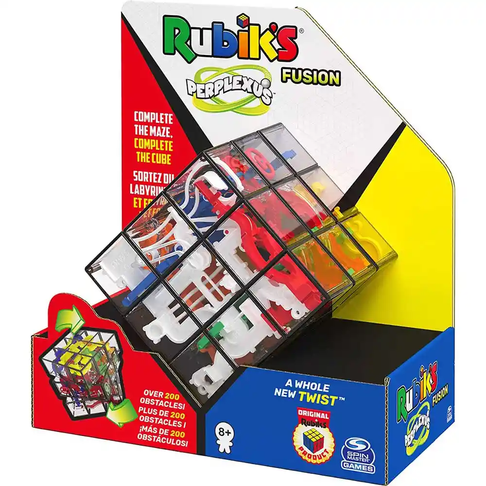 "Quieres algo nuevo y novedoso ¡ Gira, desarma y arma el Rubik’s Meet Perplexus 3x3. Enrolle la bola de acero al espacio START y gire el Perplexo de Rubik para alinear las pistas y maniobrar la bola a través del laberinto interno. Pasar más allá de los números crecientes a lo largo de la pista en su camino a la línea de meta sin caerse de la pista. Pon tus habilidades a prueba. Completa el laberinto, completa el cubo. La fusión perplexo de Rubik ayuda a desarrollar habilidades de resolución de problemas a través de un juego desafiante y atractivo. Es el tamaño perfecto para la diversión en movimiento. Rubik’s Meet Perplexus 3x3 Este producto puede contener piezas pequeñas, que representen riesgo de asfixia. Se sugiere supervisión de un adulto"