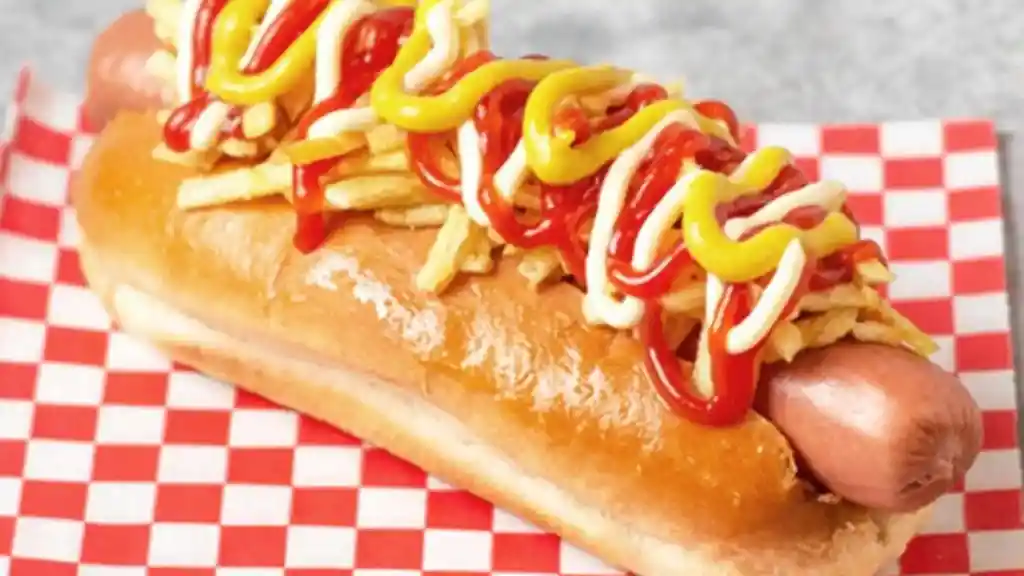 salsa de tomate salsa de piña salsa mostaza mayonesa salsa de la casa papa chongo cebolla crispy jalapeños (opcional) pepinillos( opcional)