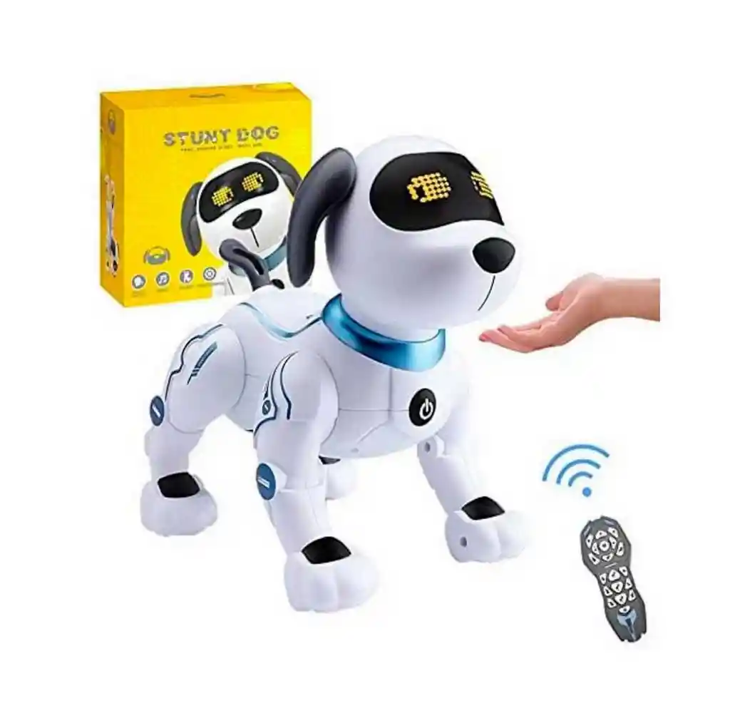 Hermoso y divertido Perrito Robótico Interactivo Inteligente a control remoto con 7 comandos , adelante, demo, parada de manos, flexiones, siéntate, agáchate, gira. Todas las acciones pueden ser controladas mediante el control remoto. Función de integración. Toca la barbilla del perro, hará movimientos lindos, sonidos e interactuará contigo. Puede ser una gran compañía para niños y adultos gracias a su función de programación, Puedes programar las acciones como quieras, y el perro repetirá lo que programaste. El perro tiene 3 bailes con música, los niños pueden bailar junto con él, lo hace aún más divertido. ///// La caja contiene : Perro robot, cable USB de carga , control, baterías para control y el perro robot //// Ficha Técnica: Dimensiones del robot: 14 cm x 21 cm x 22 cm Material: Plástico de alta calidad con una superficie lisa y no daña las manos de los niños cuando juegan con él. Alimentación del robot: 1 Batería recargable Alimentación del control: 2 Baterías AAA ( Incluidas) ** _Para defectos de fábrica o retractos: \_Por favor revise el producto apenas lo reciba y antes de usarlo. No aplican ley de retracto o defectos de fábrica luego de usar el producto. Se manejan máximo 5 días para reportar defectos de fábrica (por ejemplo, producto funciona mal, piezas faltantes, rotas, etc). Para hacer efectiva la devolución el producto debe devolverse con el empaque original, el cual debe estar en buen estado, incluir todos los documentos y las partes completas y sin daños.
