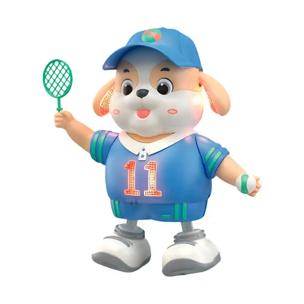 El divertido perrito bailarín con raqueta combina música, luces y movimiento para llenar de alegría cualquier momento. Vestido con un uniforme deportivo y una gorra colorida, este simpático personaje baila al ritmo de melodías mientras sus luces parpadean, invitando a los niños a moverse y reír sin parar. /// El juguete incluye baterías /// Ficha Técnica: Dimensiones: 20 cm x 15 cm x 9 cm Funcionamiento: 3 Baterias AA ( Incluidas ) Material: Plástico ABS no toxico Edad recomendada + 3 Años Referencia: JM-1129 373-73A Certificado de conformidad: CS-LCO-13233-2021S2/432 ** _Para defectos de fábrica o retractos: \_Por favor revise el producto apenas lo reciba y antes de usarlo. No aplican ley de retracto o defectos de fábrica luego de usar el producto. Se manejan máximo 5 días para reportar defectos de fábrica (por ejemplo, producto funciona mal, piezas faltantes, rotas, etc). Para hacer efectiva la devolución el producto debe devolverse con el empaque original, el cual debe estar en buen estado, incluir todos los documentos y las partes completas y sin daños.