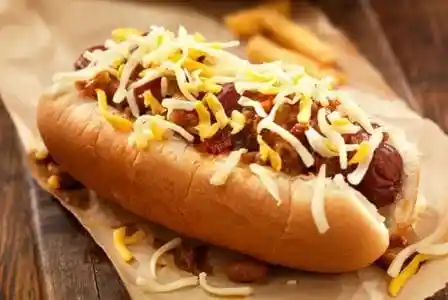 (Pan, salchicha, lechuga batavia, papita chongo, queso mozzarella, salsa de la casa)