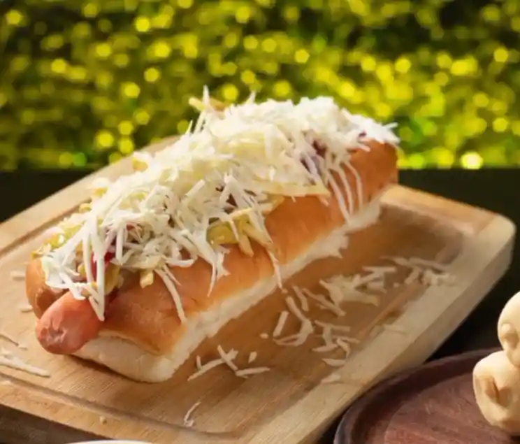 pan, salchicha,ripio ,cebolla al gusto,queso rralado y salsas (opcional ensalada de zanahoria y repollo )