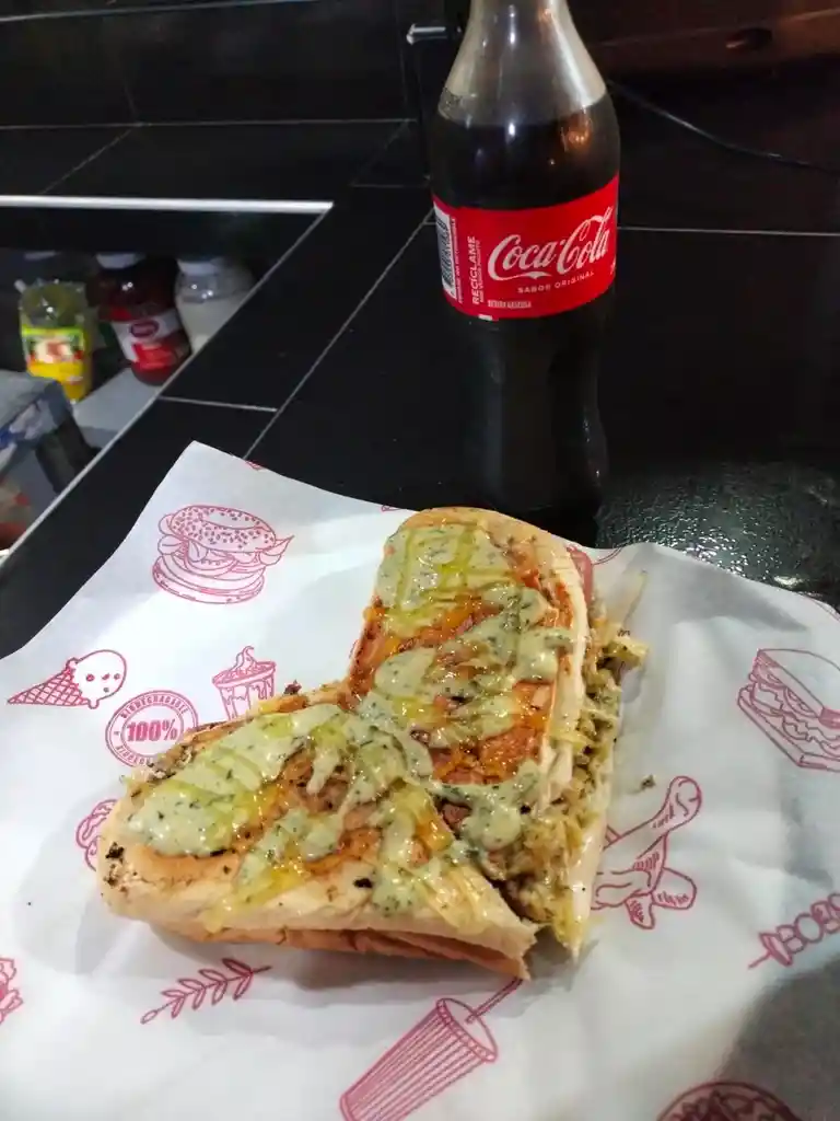 salchicha, ripio, lechuga, queso, salsa de la casa