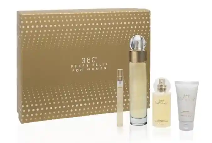 Referencia: EST 360 PE Tipo:Eau de toilette. Género:Mujer. Contenido:100 ml Formato:Set. Aroma:Floral Set contiene 360 EDT 100ml + Mini EDT 7.5ml + Body Lotion 90ml + Shower Gel 90ml Las Notas de Salida son azucena, melón, osmanto (olivo oloroso), rosa y naranja tangerina; las Notas de Corazón son lavanda, nenúfar (lirio de agua), salvia y lirio de los valles (muguete); las Notas de Fondo son sándalo, ámbar, almizcle, vainilla y vetiver.