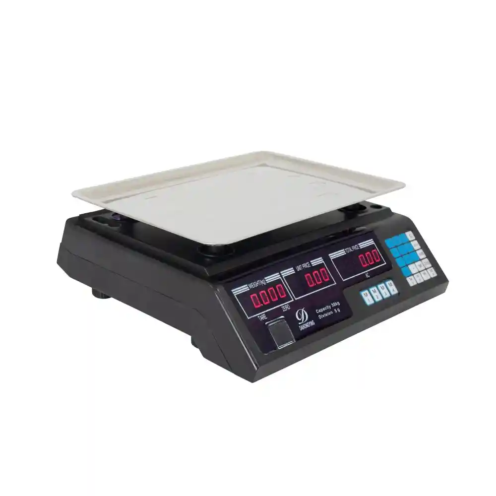 La Báscula Moresco multifunciones 40 kg es ideal para usos internos donde se requiere precisión, portabilidad y durabilidad. Su diseño compacto permite realizar pesajes exactos y eficientes en diferentes espacios. Cuenta con una estructura robusta y carcasa de alta resistencia que garantizan un desempeño confiable y prolongado. Equipada con bandeja en acero brillante, carcasa en ABS y celda de carga monobloque, ofrece estabilidad y precisión en cada medición. Su araña inferior en tubería de hierro brinda soporte firme para pesos inmóviles y cargas centradas sobre la plataforma. La capacidad recomendada no debe superar los 25 kg. Dispone de doble pantalla LED roja de alta visibilidad con funciones de peso, tara y liquidación. Su teclado con protección contra humedad incluye 8 memorias programables para almacenar precios y sumar totales. Cuenta con batería recargable interna de 4 V y cable de poder para un uso continuo. Datos Técnicos Marca: Moresco Clase: III Capacidad máxima: 40 kg División (d): 0.010 kg Escala de verificación (e): 0.005 kg Tipo: No certificada / Uso Interno Unidad de medida: Kilogramos Funciones: Peso – Liquidación – Tara – Suma de totales Alimentación: Cable de poder 110 V AC – 60 Hz y batería 4 V 4 Ah Puerto de conexión: Sin puerto serial Display: Tres displays tipo LED por dos caras Material del cuerpo: Carcasa ABS Teclado: 24 teclas tipo pulsador con protección contra humedad Tipo: De sobreponer Material de bandeja: Acero brillante Soportes de bandeja: ABS × 4 Dimensiones de bandeja: 30 × 22 cm Soportes / Patas: Rosca en ABS de alta duración Todas nuestras Básculas y Balanzas son revisadas con pesas patrón certificadas por laboratorio acreditado por la ONAC. Equipo no certificado OIML No apto para actividades mercantiles y sanitarias. GARANTÍA DE 1 AÑO