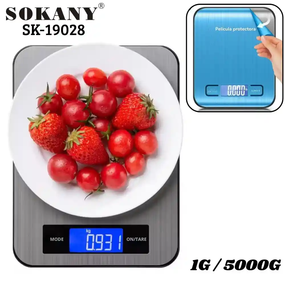 Pesa Bascula Gramera Digital Precision 5000gr 5kg Balanza Sokany Sk-19028 Uso versátil: Perfecta para la cocina, el hogar, la oficina e incluso para pequeños negocios. Fácil de limpiar: Su superficie de acero inoxidable es resistente y apta para una limpieza rápida y sencilla. Portátil y ligera: Llévala contigo a donde vayas gracias a su diseño compacto y liviano. Su amplia capacidad de 5 kg te permite pesar desde especias hasta piezas grandes de carne o verduras. Funcionalidad moderna para mayor practicidad Función tara: Pesa tus ingredientes en un recipiente sin necesidad de restar su peso. Pantalla LCD clara y fácil de leer: Muestra el peso en dígitos grandes y nítidos para una lectura precisa. Funciona con batería CR2032 (NO INCLUIDA) Especificaciones técnicas: Capacidad: 5 kg Precisión: 1 g Función tara: Sí Pantalla: LCD Material: Acero inoxidable